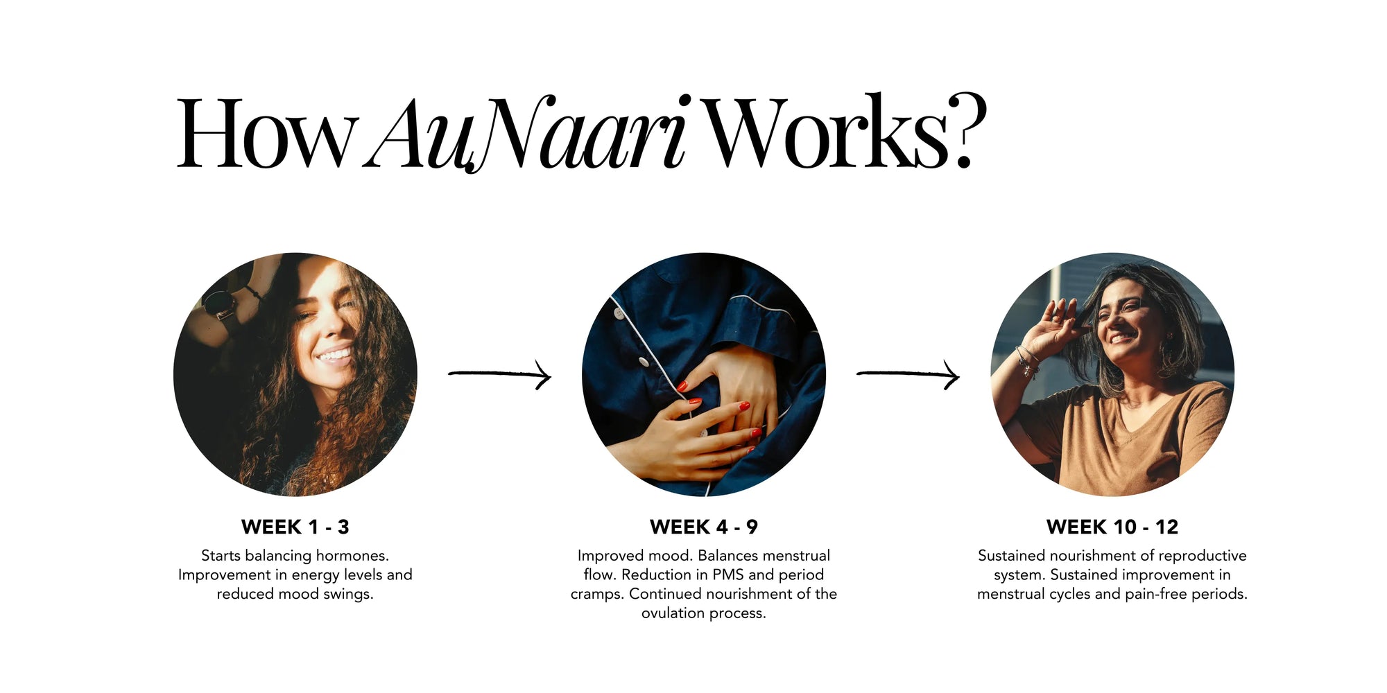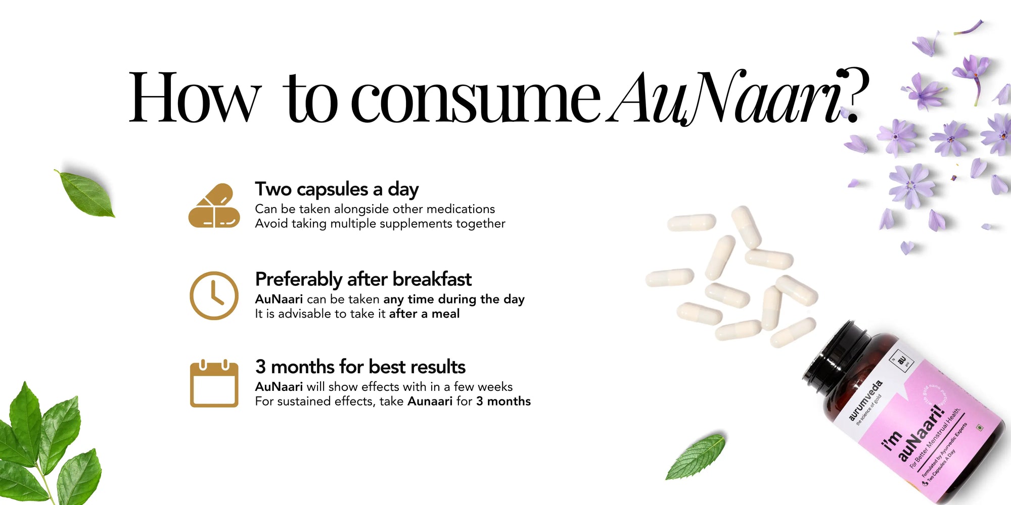 You may consume AuNaari capsules with room-temperature water or milk. Avoid combining AuNaari with other similar supplements, or exceeding the recommended daily dosage.